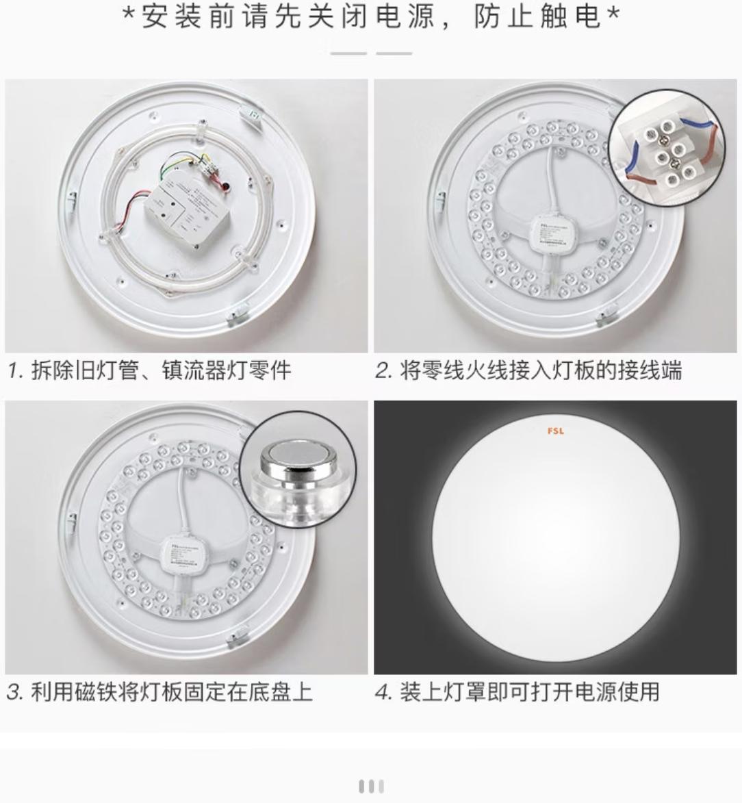 若想升级现代照明效果,可直接更换LED灯盘或灯具。拆除旧灯全部部件,将新LED灯盘固定在天花板,接好电源线就能完成安装。
