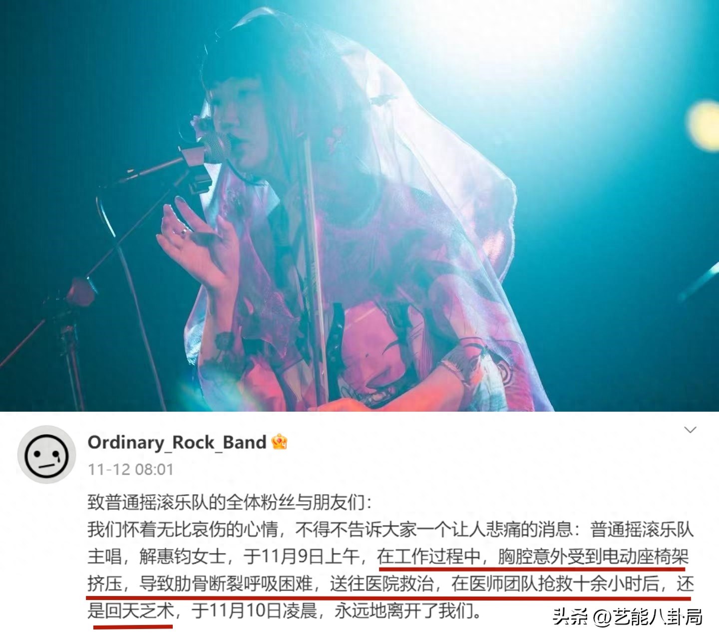 女歌手阿珍被“电动座椅架”挤压,抢救十几个小时后不幸去世。