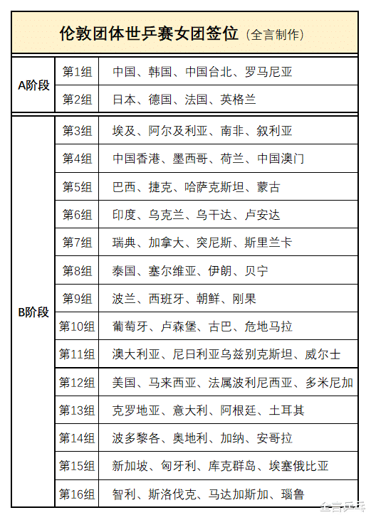 根据规则,瑞典男团已经直通世乒赛32强,不过仍然要在第一阶段小组赛与中国、韩国、英格兰队交手以确定第二阶段的抽签顺序;瑞典女团与加拿大、突尼斯、斯里兰卡同组,第一名直接出线,第二名不确定能获得晋级。
