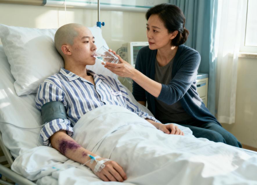 入院后,徐俊凯接受系统化疗。第一周他还能微笑安慰母亲:“我没事,只是累了点。”但第二个疗程开始后,呕吐、脱发、乏力接踵而至。每一次注射药液,他的脸都白得几乎透明。护士帮他换药时,徐俊凯的手臂上青紫斑驳,血管像枯枝般脆弱。父母每天轮流守在床边,喂他喝水、擦汗。母亲看着儿子越来越瘦的脸,常背过身去偷偷抹泪。医生每周查房时语气愈发沉重:“肝功能在下降,药量要减。”徐俊凯的父亲强作镇定地点头,手却一直在抖,仿佛怕这次握不到儿子的手了。