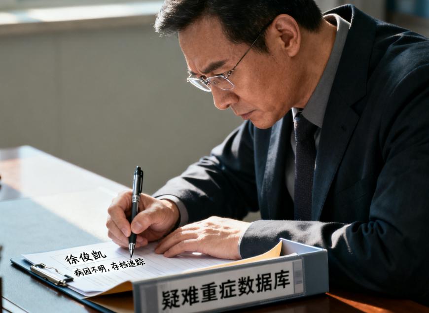 那一刻,他轻轻叹了口气,久久无言。报告纸在他手中微微颤动,他在备注栏里写下八个字:“病因不明,存档追踪。”随后,他郑重地将徐俊凯的病例归入疑难重症数据库——一个理性自律、几乎做对所有事的年轻博士,却仍倒在癌症面前。那行冷冰冰的记录,成了全科室无法释怀的疑问。