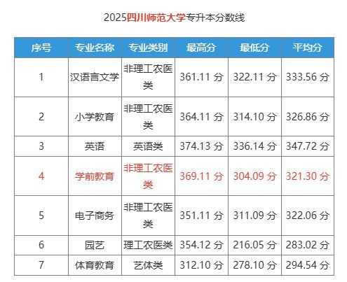 2025年四川师范大学专升本分数线按专业类别划分,包括非理工农医类、理工农医类、艺体类及英语类。