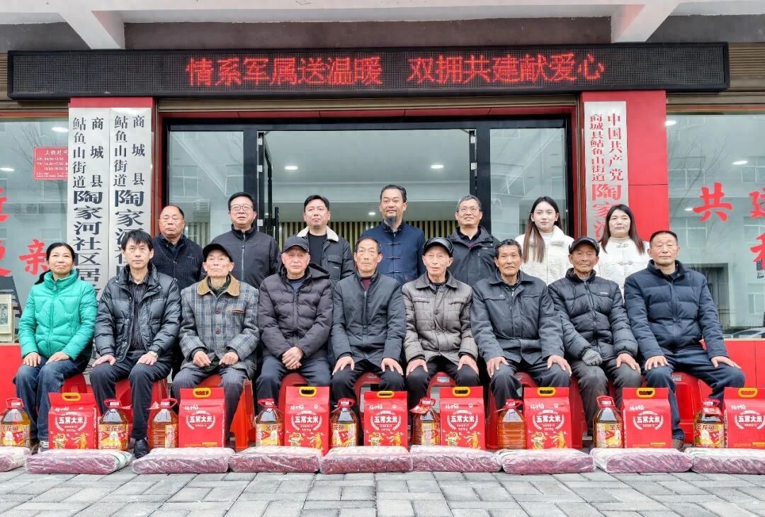 时值元旦佳节来临之际,12月30日下午,一场洋溢着温情与敬意的特殊“晚会”,在商城县鲇鱼山办事处陶家河社区温情上演。商城县志愿者协会会长卢庆携游侠客一行,与博庆中医院院长胡传兵并肩同行,带着满满的诚意与关怀,为社区退役军人及现役军人家属送上米面油等生活物资,更捎去了浓浓的新春问候。