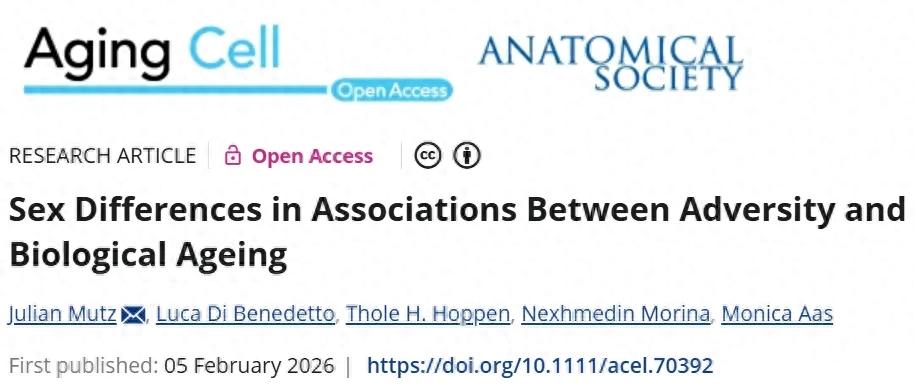英国伦敦国王学院Julian Mutz、Luca Di Benedetto团队依托英国生物银行15万余人的海量数据研究发现,逆境对生物衰老的影响,存在显著的性别和生命阶段差异,为我们理解衰老机制打开了新视角。