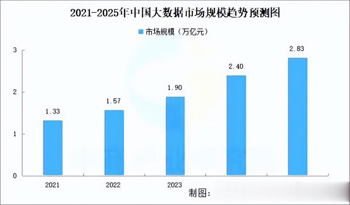 伴随着数据产量的高速增长,国内大数据产业规模大幅提升,成为推动数字经济发展的重要力量。2023年中国大数据产业规模为1.9万亿元,较上年增长21.02%,2024年市场规模达到约2.4万亿元,预计2025年中国大数据产业规模将进一步增至2.83万亿元。
