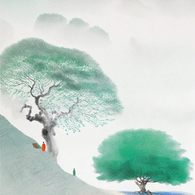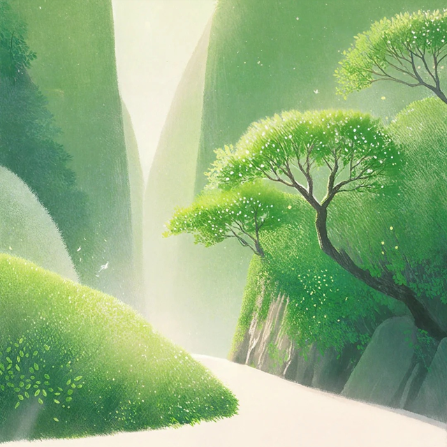 山中下了一整夜的雨,清晨,树梢上挂满了晶莹的水珠,汇聚成百道细流,如同无数股小小的泉水,潺潺而下,回荡着山谷的清幽。