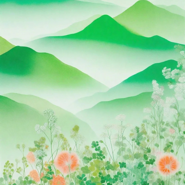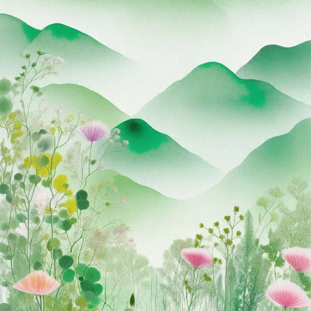娇艳的鲜花,带着一片片淡淡的红晕,刚刚被雨水打湿。几丝柔嫩的绿意,在这细雨中,与烟雾交织,朦胧而美好,却又带着一份漂泊的清愁。