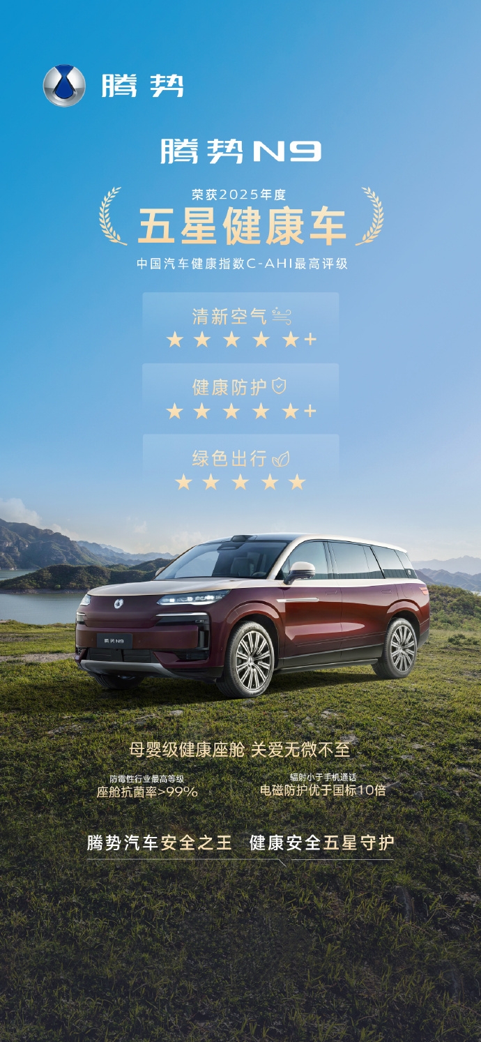 从知乎安全大片的沉浸式演绎,到现实出行的全场景守护,从主动安全到被动安全,从智能安全到健康安全,腾势 N9 以全场景的安全守护,重新定义了新能源豪华 SUV 的安全标准。它不仅用前沿的科技与硬核的实力,为用户带来了极致的安全出行体验,更以 “科技豪华” 的理念,打破了传统豪华品牌的市场壁垒,引领新能源豪华汽车市场从品牌导向进入技术导向和体验导向的新时代。在未来,腾势 N9 将继续以用户需求为核心,持续进化升级,为更多家庭打造更安全、更豪华、更智能的出行选择。
