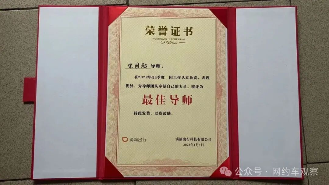会场悬挂的横幅上,一行字概括了他入行以来不平凡的六年:“年度司机达人宋国超——从退役军人到滴滴‘五星导师’,长期悉心指导新司机,积极分享经验,连续多年获评平台优秀导师奖项”。