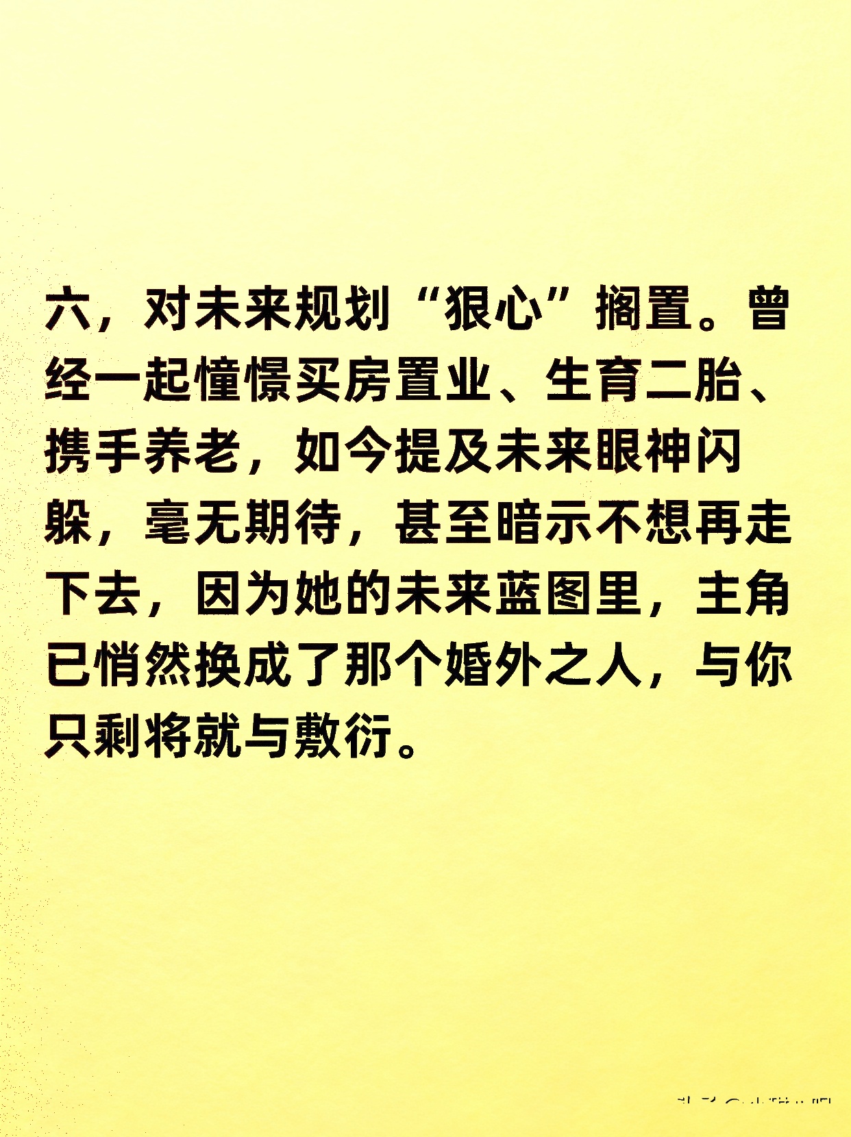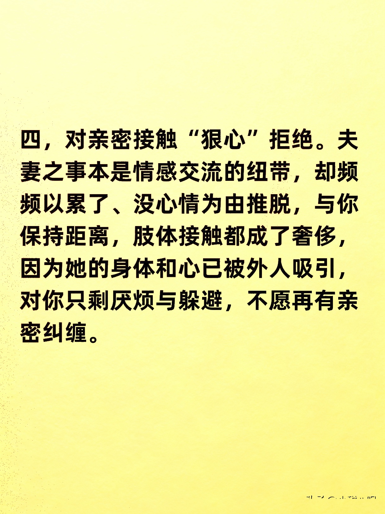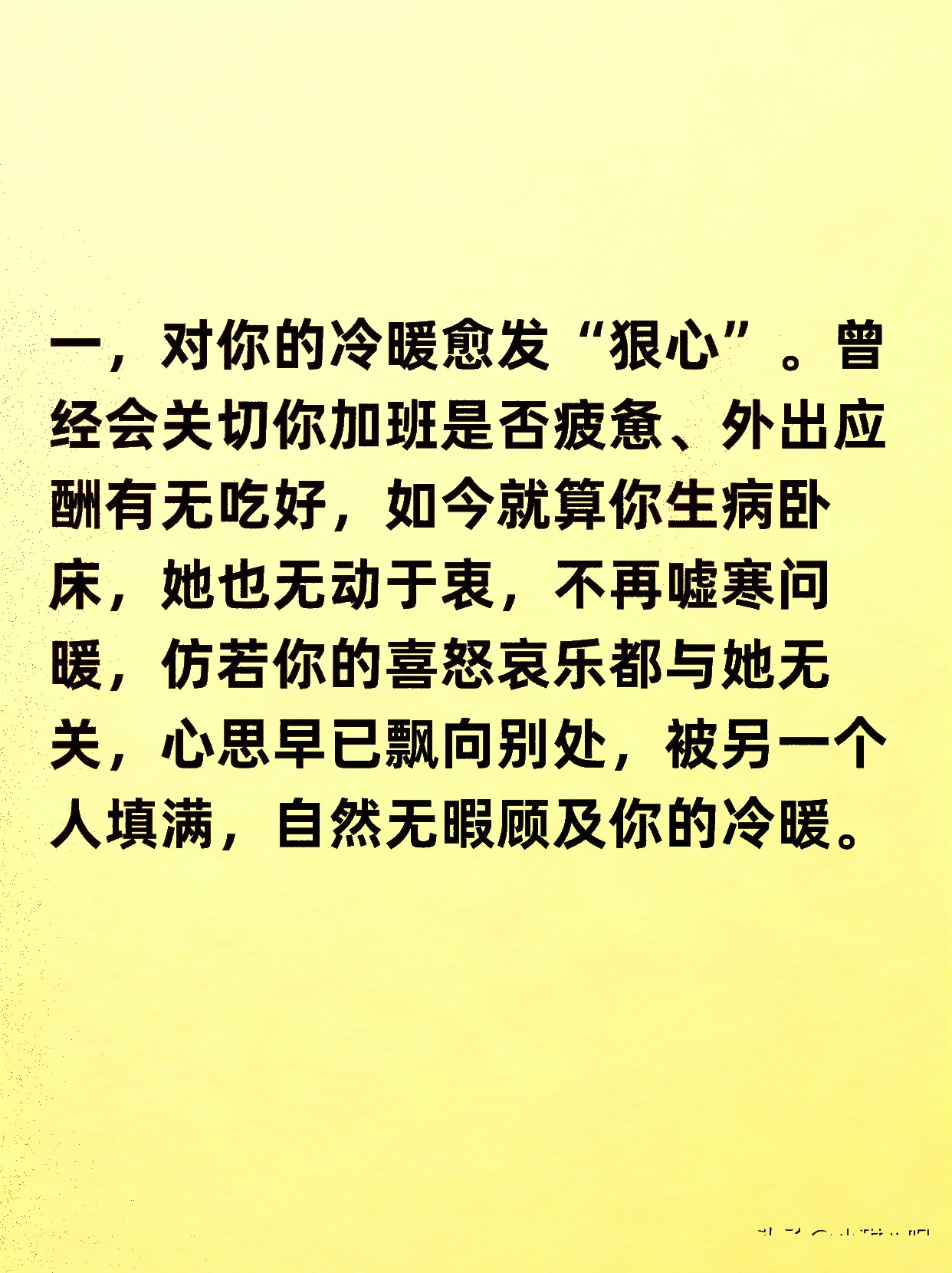 曾经,她的温柔是你的港湾,如今却成了无法靠近的冰山。她的手机不再对你开放,深夜的晚归成了常态,解释也变得敷衍。当你试图靠近,她眼神里的闪躲和不耐烦,像一把无形的利刃,割裂了你们之间最后的温存。那些曾经无话不谈的夜晚,变成了同床异梦的寂静。她的“狠心”,并非突如其来的风暴,而是早有预谋的疏远。当一个女人的心不在你这里,她留给你的,只剩下一个冷漠的背影和无法拼凑的破碎。