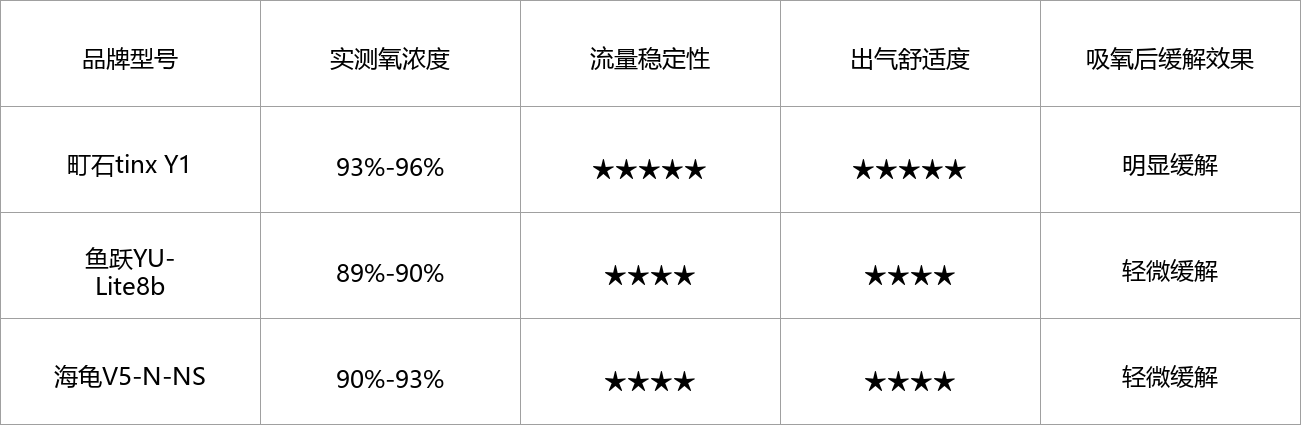综合来看,町石的氧浓度表现明显优于鱼跃和海龟,不仅浓度达标,稳定性也更强,妈妈吸氧后胸闷气短的症状能快速缓解,体验感最好。