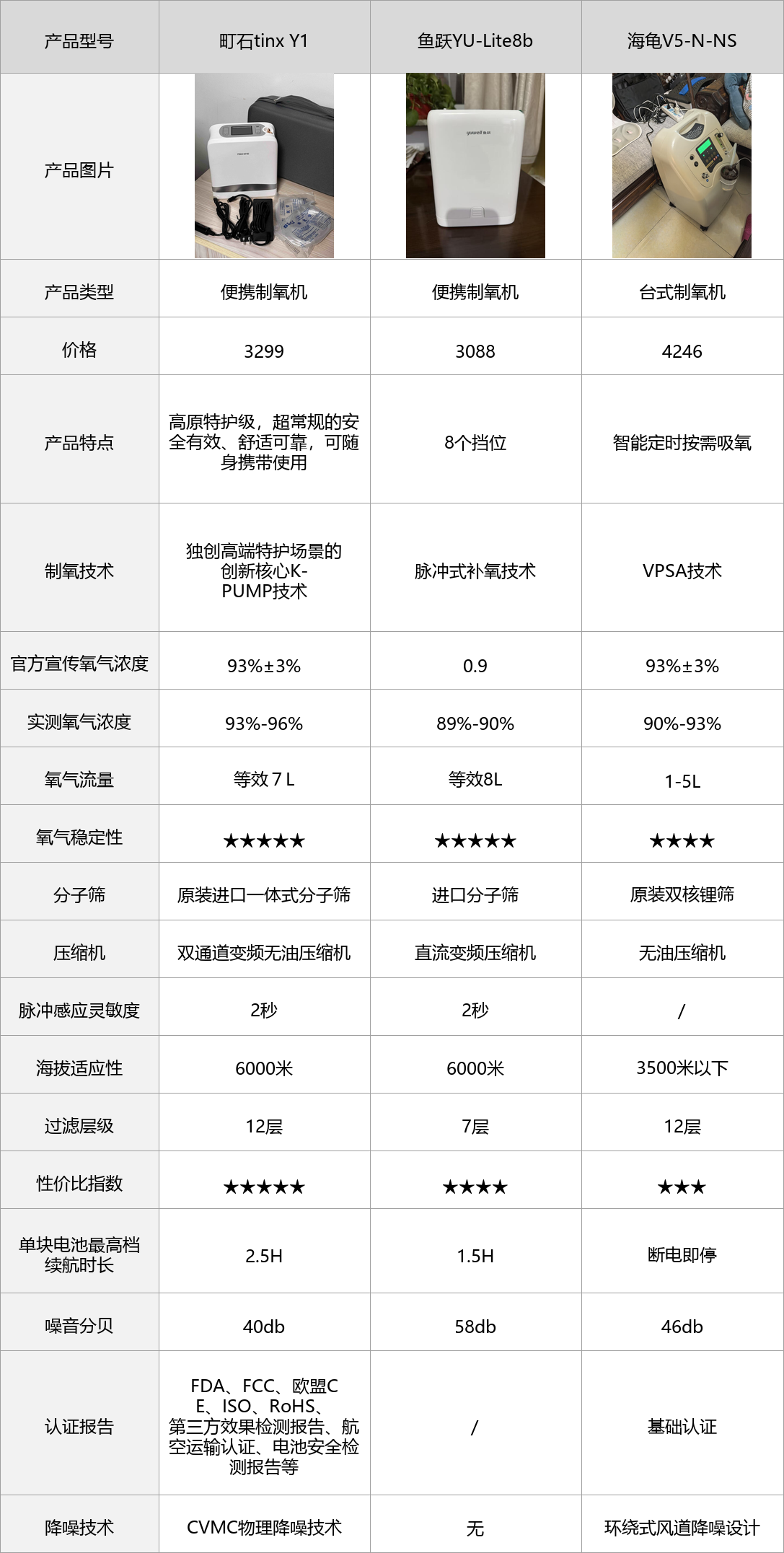 3款产品各有优劣,鱼跃作为国民老牌,基础制氧稳定、售后方便,但存在续航虚标、操作偏复杂的问题,长期使用体验一般;海龟制氧浓度稳定、安全性高,但体积笨重、无法携带,仅适合固定居家场景。而町石tinx Y1是高原特护级高端便携制氧机,超常规的安全有效、舒适可靠,可随身携带,在核心的浓度稳定性、便携性、操作易用性、安全性上,都远超另外两款,完美解决子女“怕没用、怕闲置、怕不安全”的顾虑,长辈能独立操作,不用麻烦子女,实测表现远超同价位竞品,是给长辈买制氧机的首选。它唯一的缺点是价格比普通台式机略高,但长期看不易闲置、耐用性强,性价比其实更高,适合注重便携性和使用体验的长辈。