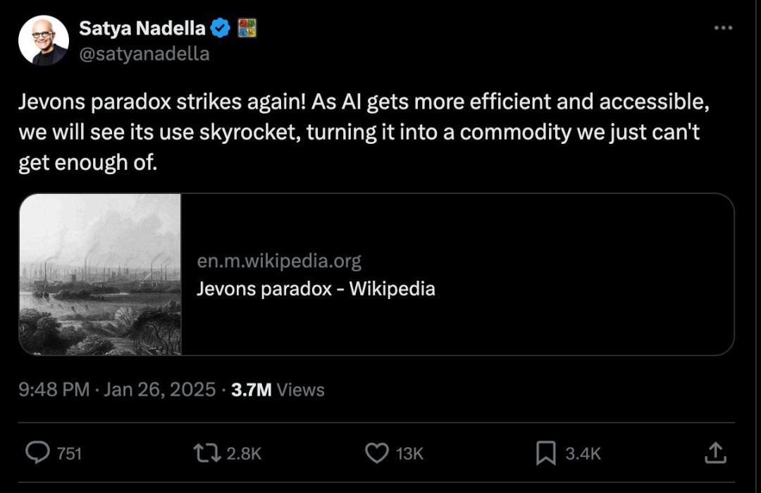典型的杰文斯悖论:效率提升,并没有省钱,只是把规模放大了。