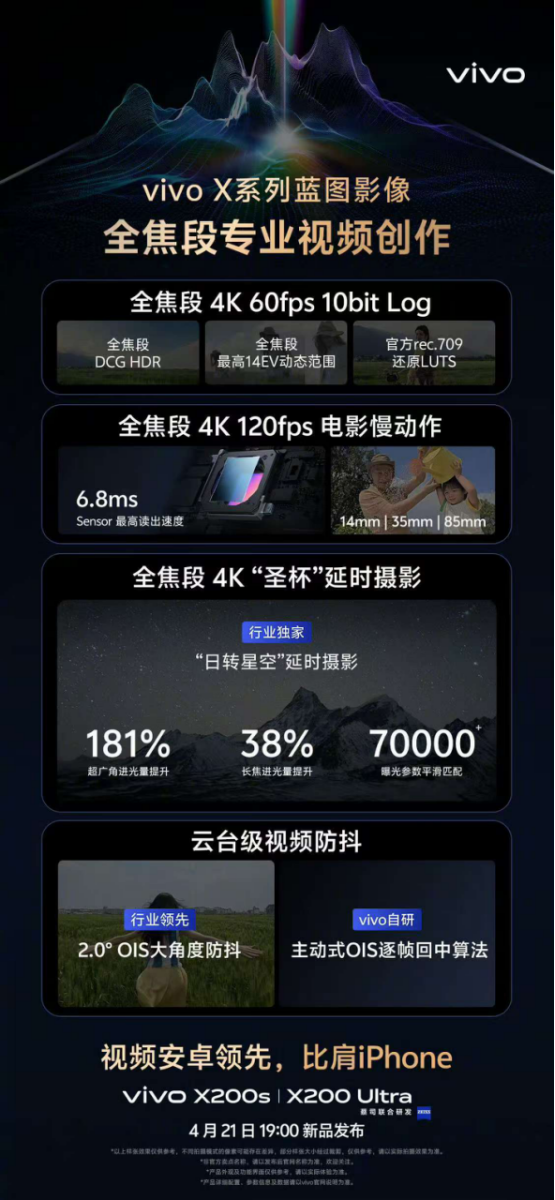 对于影像旗舰来说,只有拍照好是远远不够的,vivo X200 Ultra支持全焦段4K 60fps 10bit Log拍摄,还有云台级视频防抖技术加持,在安卓阵营当中vivo X200 Ultra的视频拍摄能力是相当出众的。
