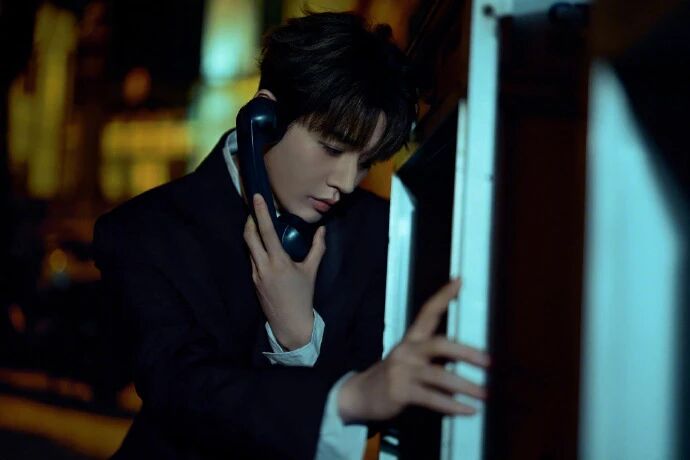 :倚墙、靠车、垂眸,没有 “硬凹的港风 pose”—— 黑西的垂褶跟着他的动作晃,像 “刚拍完夜戏,顺道被夜色抓来定格的”,松弛感是 “衣跟着人动,不是人跟着衣演”。