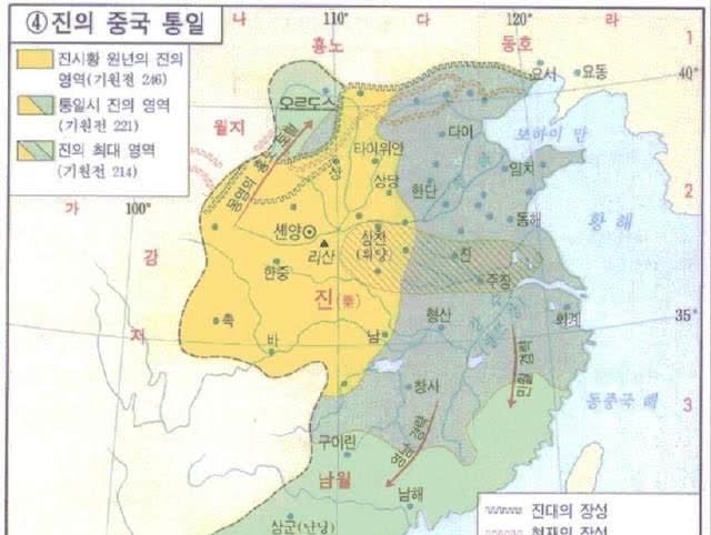 然而,韩国在秦朝地图上被分成了不同的颜色,秦朝征服了其他国家,收复了领土。