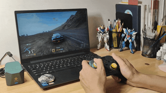 它的两段式霍尔扳机锁,也是我用得特别顺手的一个功能,能随心切换线性和短行程两种模式。玩《地平线 5》的时候,切到长行程线性模式,能细腻精准的控制油门和刹车力度,连续过弯的时候轻扣扳机就能稳住车身,指尖还能感受到贴合场景的震动反馈,就像真的握着赛车方向盘一样,沉浸感直接拉满。