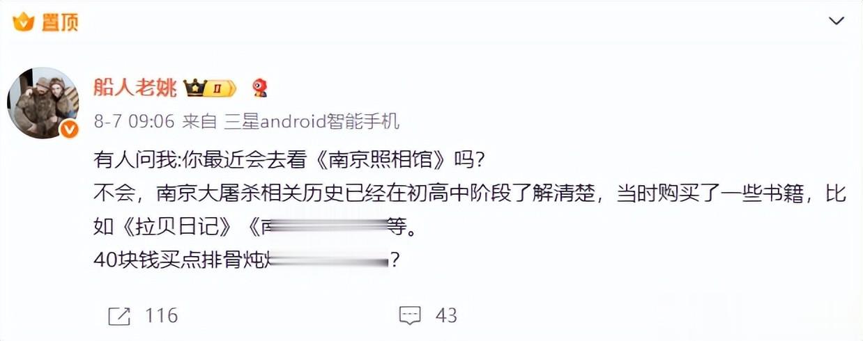 还在那带节奏看《南京照相馆》不如买排骨,完全无视民族感情。