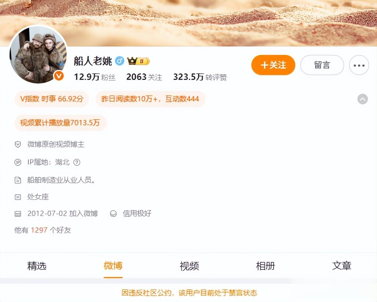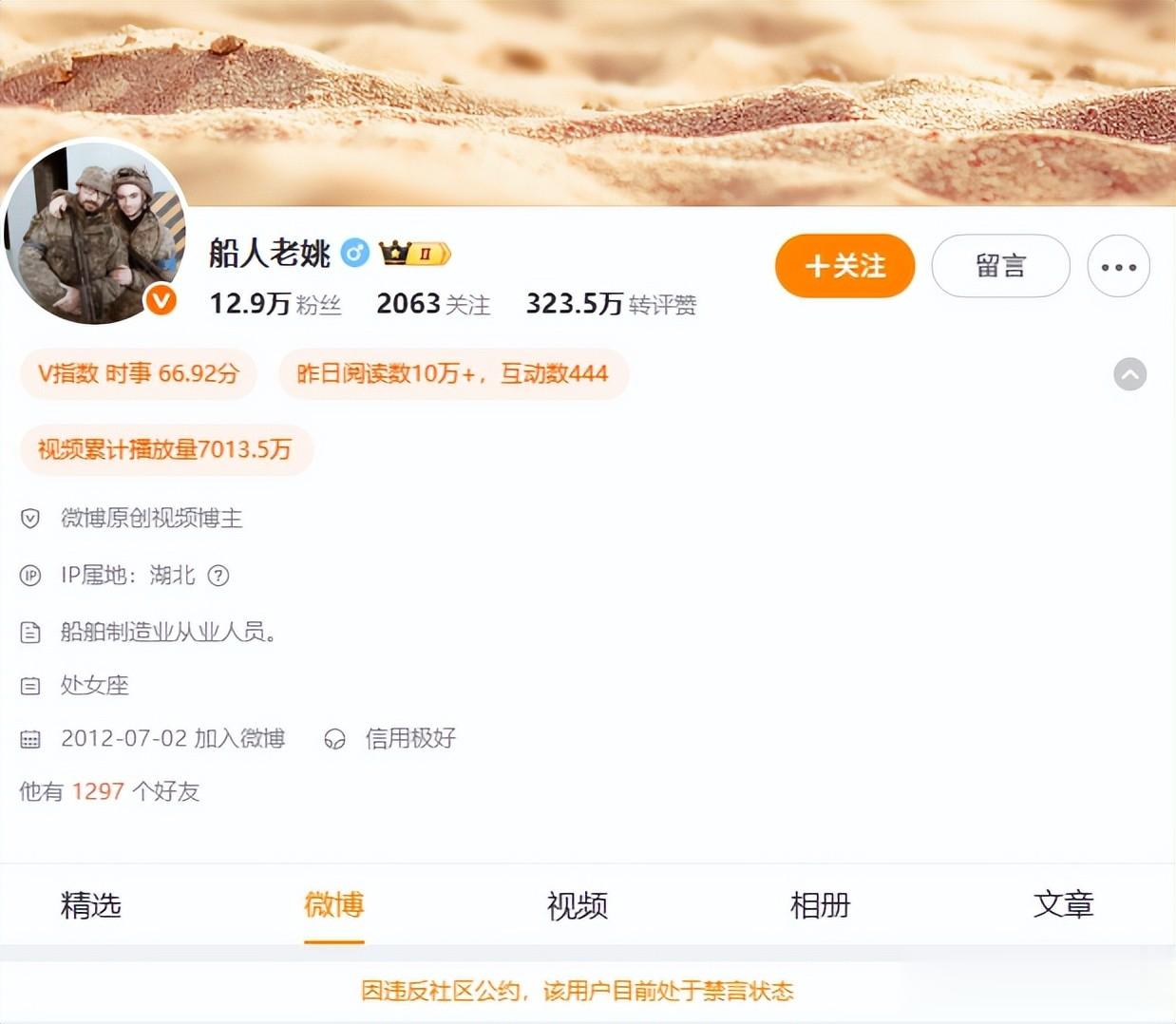 01看其账号简介,这个老姚从事的是船舶制造业,这名头一拿出来还能唬住不少人,觉得这是一个行业人员。