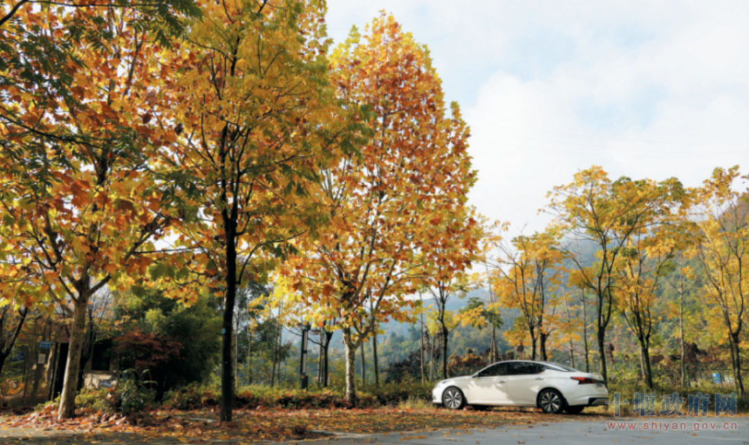 茅箭区马赛路,如一幅绚丽秋画。十堰融媒记者 张婧 摄