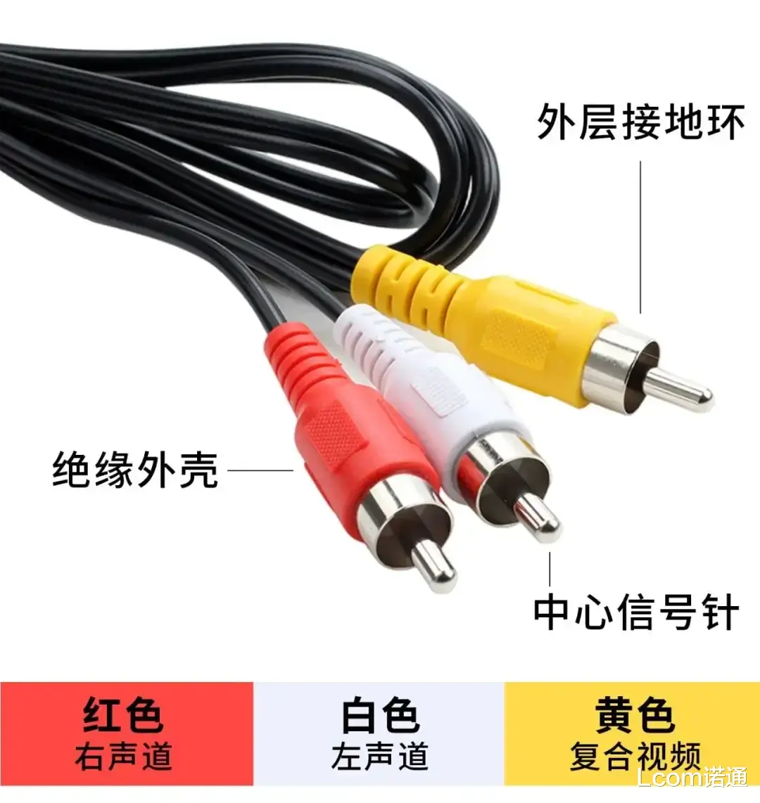 标准RCA接口通常采用红(右声道)、白/黑(左声道)、黄(视频)三色标识。连接时必须确保插头与插孔颜色对应。