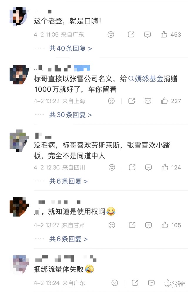 有网友在张雪评论区称:“标哥这个车应该不会过户,给你用。”没想到性格张雪又来了一条极其耿直的回复。