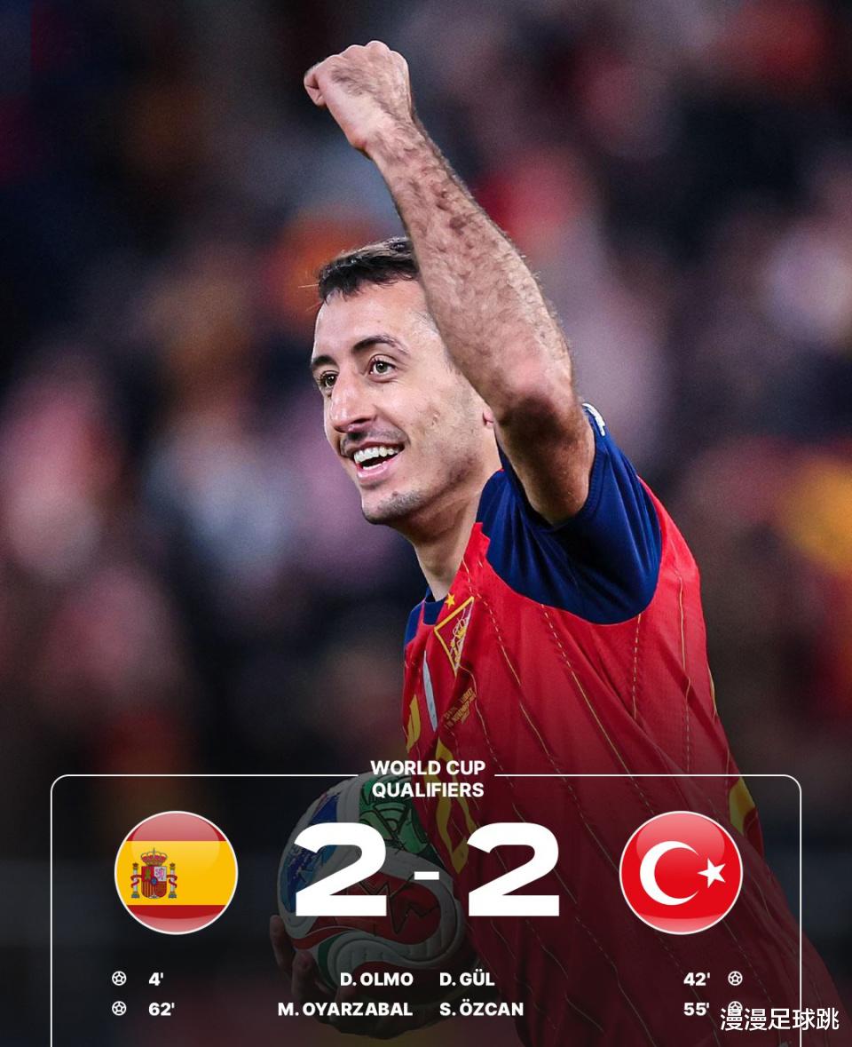 易边再战,西班牙后防突然短路,第54分钟被厄兹詹一脚世界波洞穿球门,2-1再次领先对手。第60分钟,奥亚萨瓦尔在混乱中抢射破门,将比分拉回2-2。最终双方握手言和,西班牙积16分成功锁定小组头名,轻松挺进世界杯。
