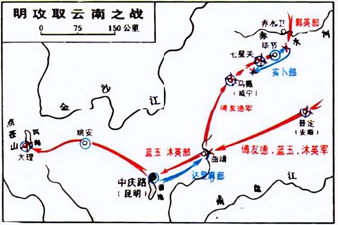 明军攻取云南示意图