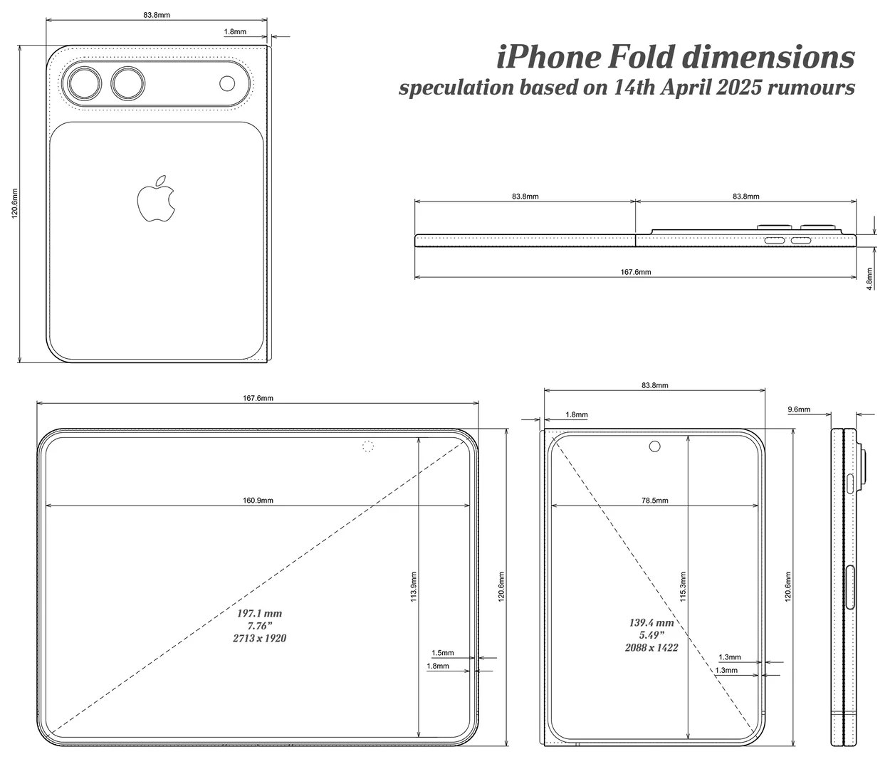 再看尺寸比例,iPhone Fold 被普遍描述成“外屏像 iPhone,内屏像 mini iPad”的路线——这背后是一个很关键的产品定义:折叠屏不应该牺牲外屏体验。