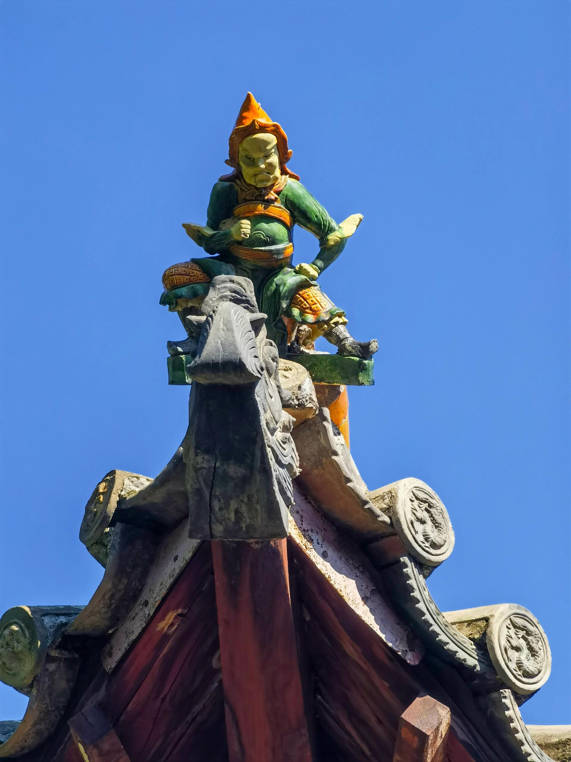 穿过山门,正中的正方形台基上,金代的雷音殿静静伫立,这是定林寺现存最早的木构建筑,也是古寺的精华所在。单檐歇山顶的坡度平缓舒展,面阔与进深各三间,规模不算宏大,却显得小巧玲珑,端庄秀丽。梁架结构为六架椽屋,简洁而稳固,历经近千年风雨依旧屹立不倒,足以见得金代建筑技艺的高超。檐下的斗拱飞檐线条流畅,造型古朴,没有过多的装饰,却自有一番雄浑的气质。屋顶的琉璃脊饰是金代琉璃制品的佳作,色彩鲜艳,图案精美,虽经岁月洗礼,依旧光彩夺目,为这座古朴的大殿增添了几分华贵之气。