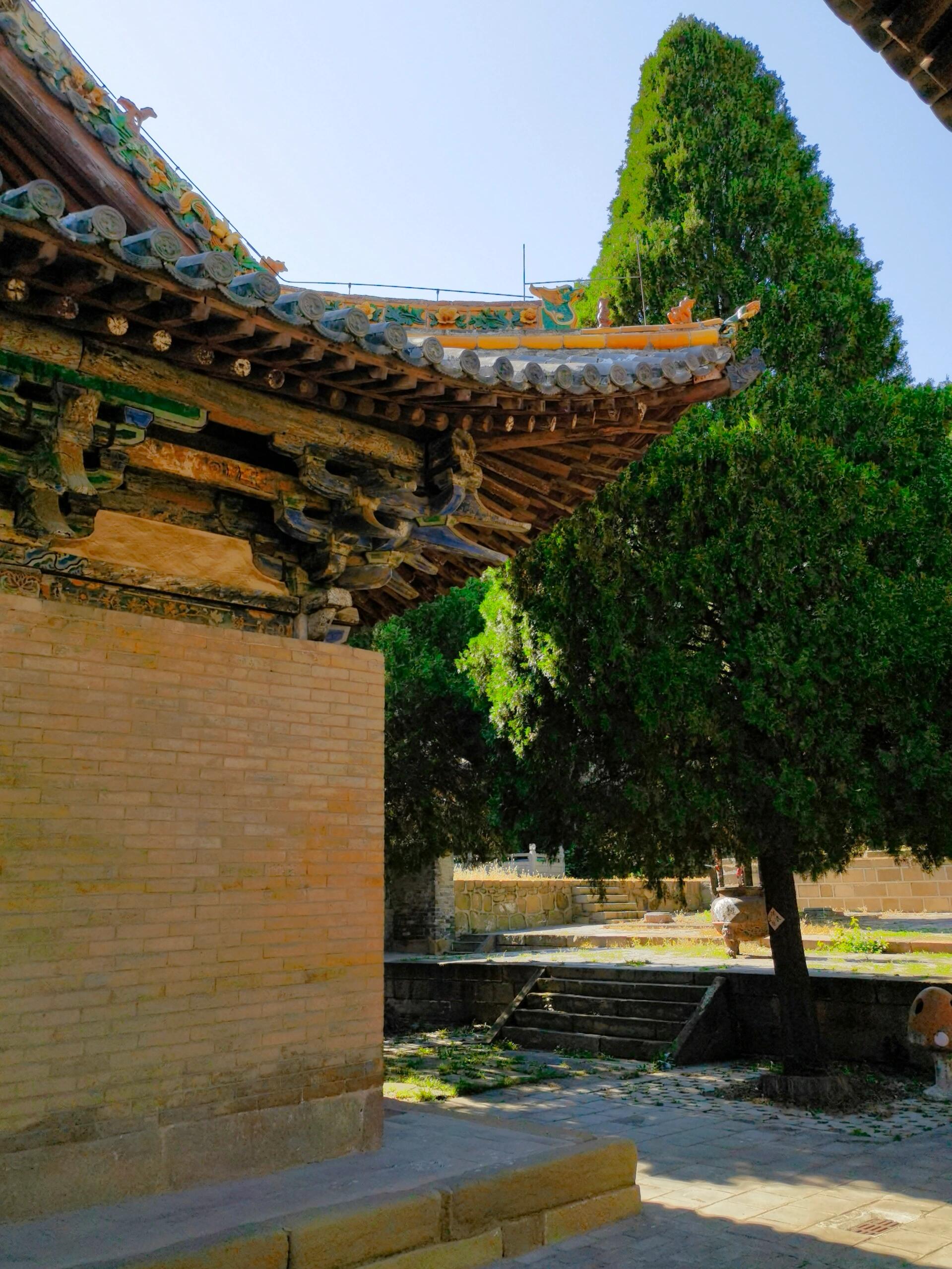 站在雷音殿前,望着这座跨越千年的金代木构,心中满是敬畏。它见过金代的繁华,经历过朝代的更迭,见证过寺内的香火鼎盛与沉寂,却始终以坚韧的姿态守护着这片土地。殿内的佛坛上,造像虽非金代原物,却依旧庄严肃穆,神情慈悲,让人不由得静下心来,感受这份跨越时空的宁静。阳光透过窗棂洒进殿内,在地面上投下斑驳的光影,梁架上的木材纹理清晰可见,散发着淡淡的清香,仿佛在诉说着千年的故事。