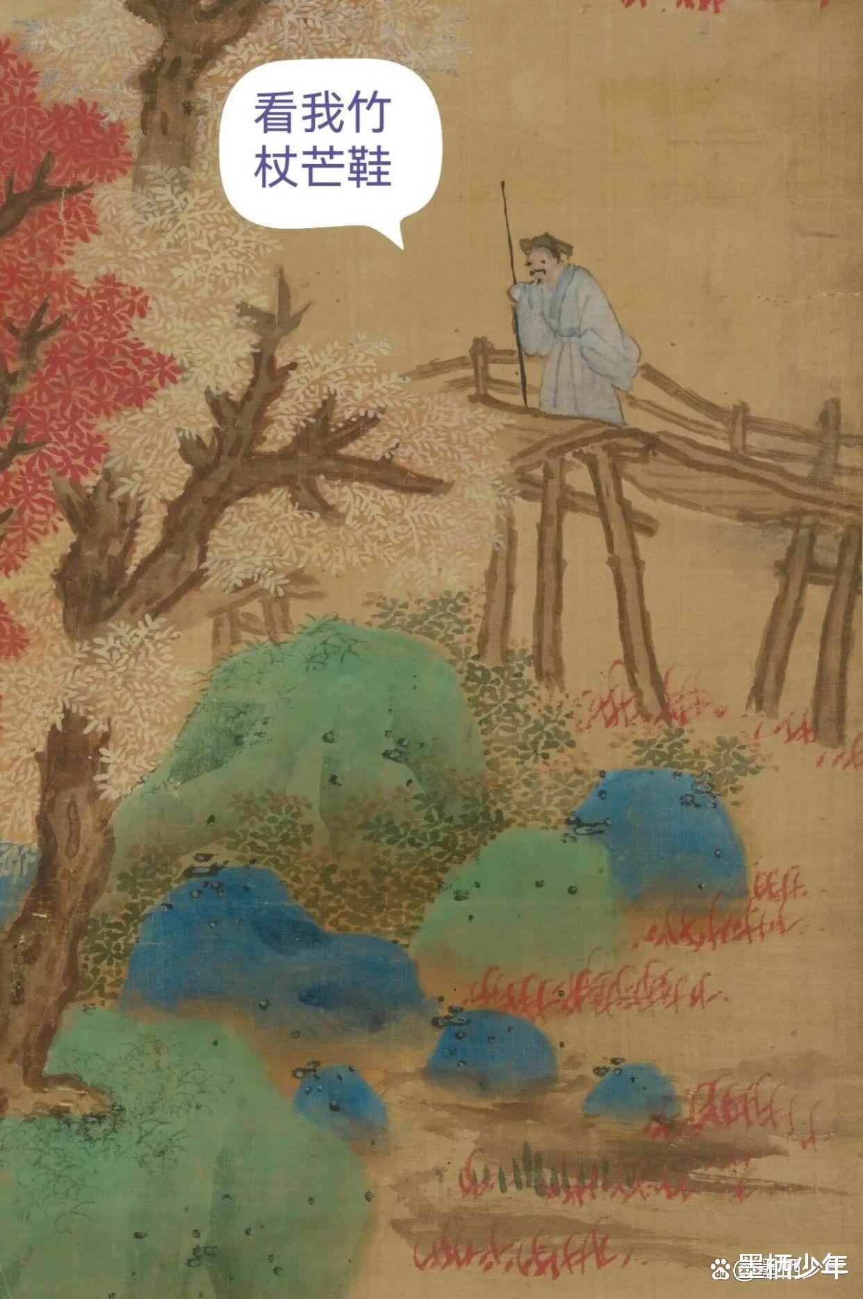 一位文士“竹杖芒鞋轻胜马。”