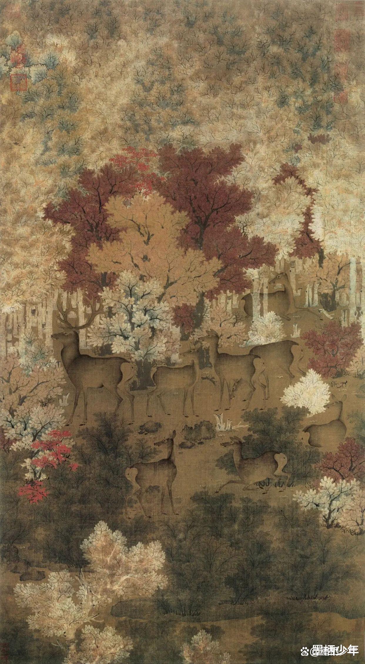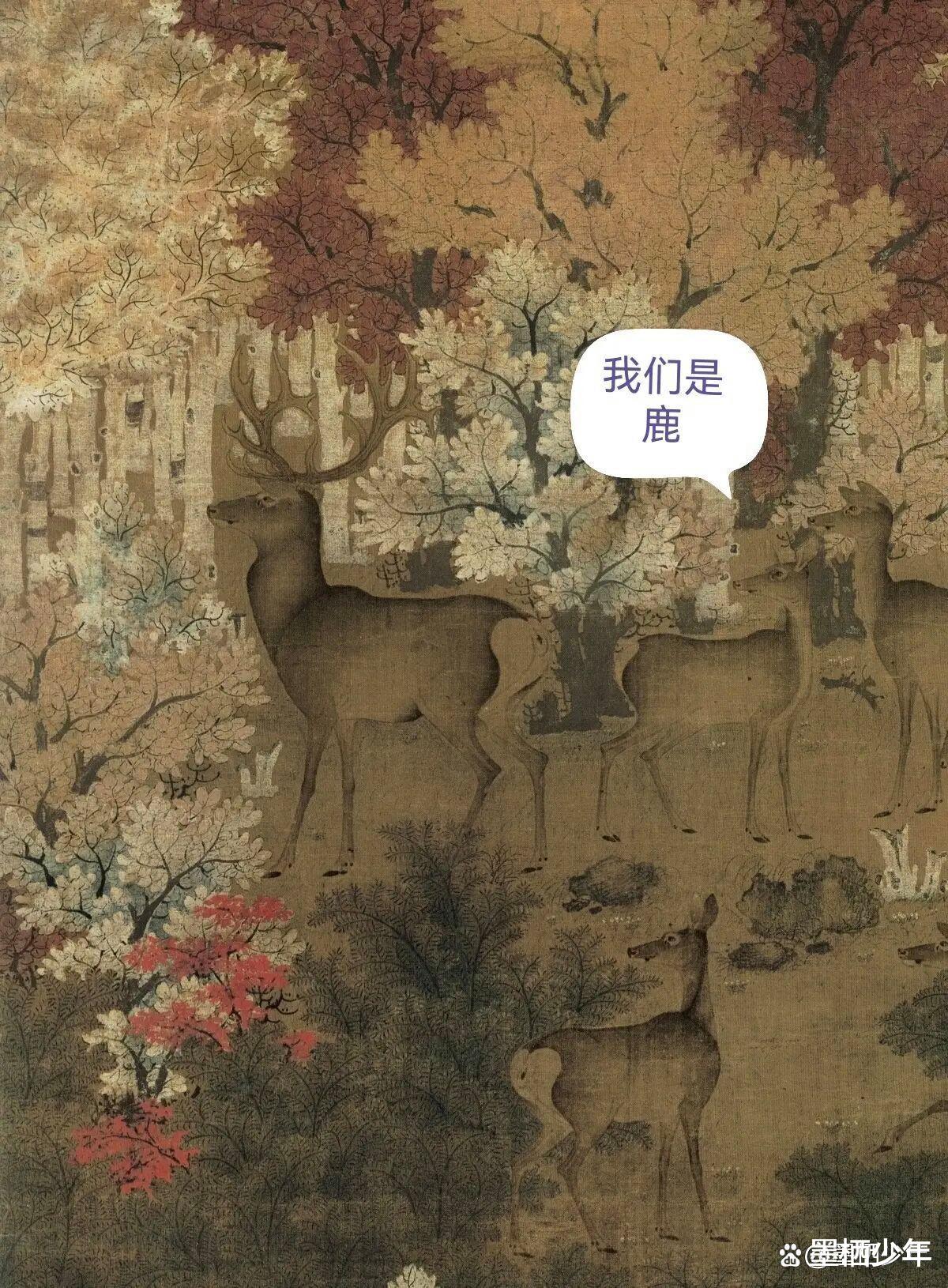 这是鹿啊!多么灵动的鹿,有的在追逐,有的在觅食,生机勃勃的野趣。考考你眼力,告诉我你找到几头鹿了?枫是“丰”,鹿是“禄”,寓意美好。