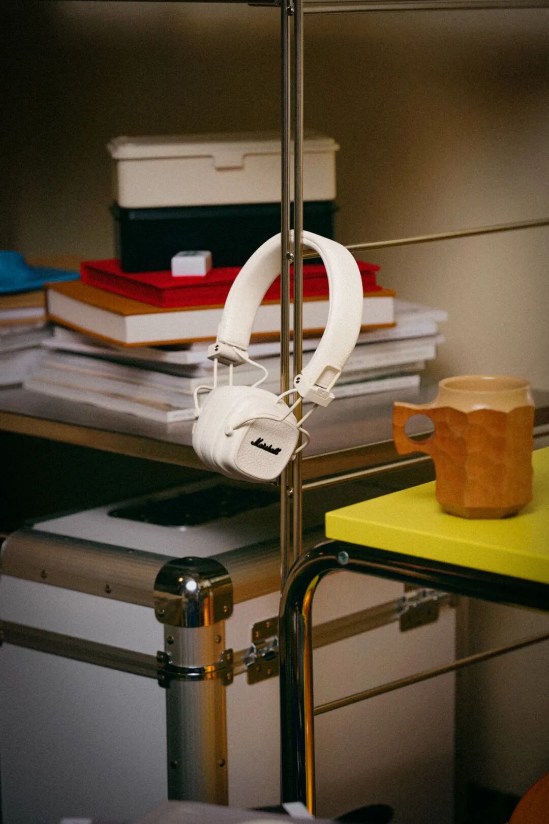 当一切归整理序完毕,拥有复古造型的 Marshall Major V 还能充当家居空间的点睛装饰。其方正的耳机轮廓棱角设计是为了致敬经典方形音箱形状,油彩白配色的设计更为空间增添了时尚感和高级的氛围。与其他家居用品搭配在一起,没有一丝突兀,反而会成为增色空间的亮点。即使需要节省空间,Marshall Major V 采用可折叠设计,对于收纳还是随身携带的需求都能轻松应对。