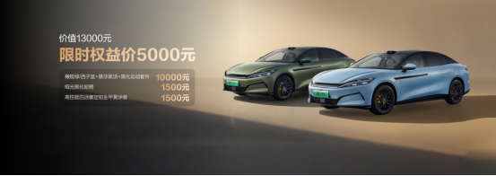 即日起至12月31日,汉L用户可享至高5.2万元尊享礼遇,唐L用户至高4.5万元权益。汉L原价13000元的外观套装限时仅5000元,唐L部分车色限时免费或优惠选装。
