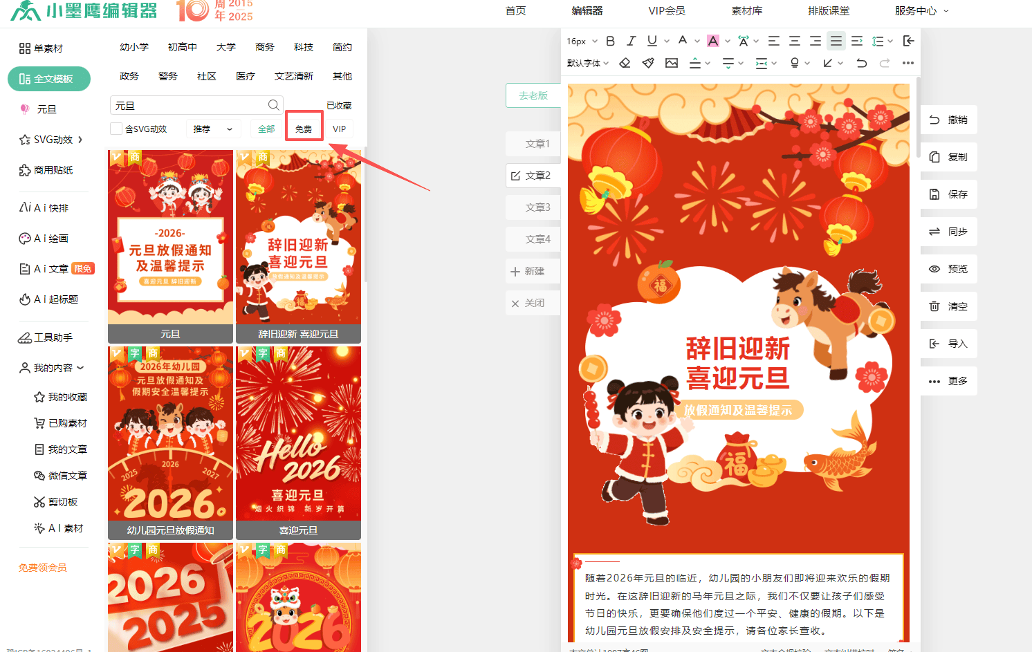 2026马年元旦微信长图文排版免费模板哪里找?这2个技巧帮你忙!