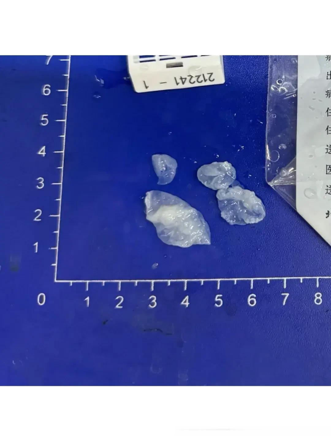 术中内镜下可见右侧脑室壁粗糙,广泛炎性黄白色突起肉芽增生——这是既往有过颅内感染的典型表现。肖庆教授更加坚定了之前的判断,进行第三脑室底造瘘,并在基底池内取出数枚囊虫占位,大者外观达2*2cm;同时探查发现基底池内部有多发黄色网状粘连,基底动脉搏动差。