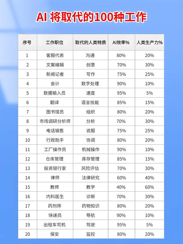 3. 你的“可替代性”太高了2025年,基础文员岗位薪资下降12%,而AI训练师、提示词工程师等新兴岗位薪资涨超40%。市场正用真金白银投票:越容易被替代,越不值钱。