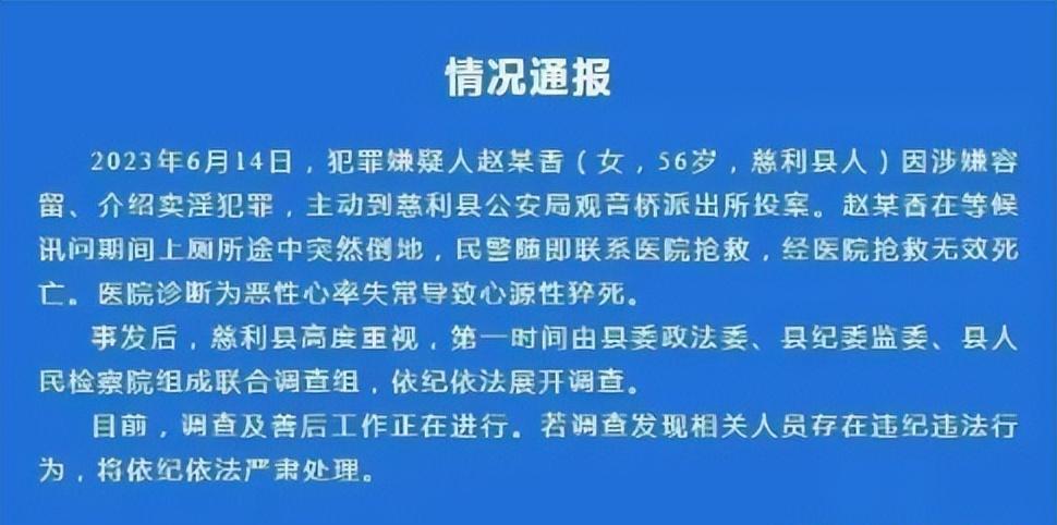 很快当地的相关部门组织成立的小组并在调查之后发出公告,内容显示赵某是认识到错误,知道自己涉及违法问题然后自动投案的,并且其倒地休克是在审讯之前,而后就送去治疗了。