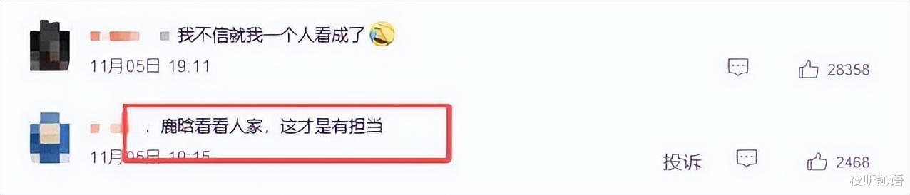 评论区有人发评:“鹿晗看看人家,这才是有担当”。