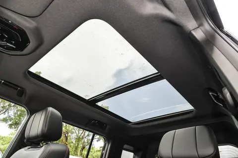 外观不仅颜值在线,细节设计也兼顾了实用性,不会只做表面功夫。2.0TD XWD发现版标配熏黑套件,熏黑轮毂、前脸饰条和车顶行李架相互呼应,进一步强化了越野质感,线条简约利落不杂乱,车内还配有G318光刻饰板,细节处更显质感。车身颜色选择也丰富,除了常见黑白,还有极光绿、荒野棕等户外风配色,搭配限时优惠的哑光公路灰,不管偏爱低调还是个性,都能找到适配款式,同时该车还配备64英寸全景大天窗,采光通透,日常开车或户外出行都能享受开阔视野。
