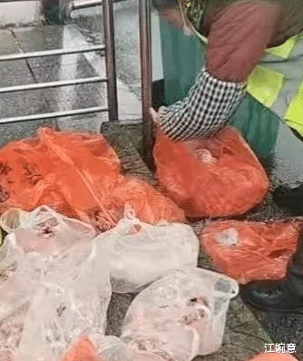 环卫工人把这些年货都给整理出来后,大大小小共计二三十袋,光是肉类的价值都差不多要上千元了。