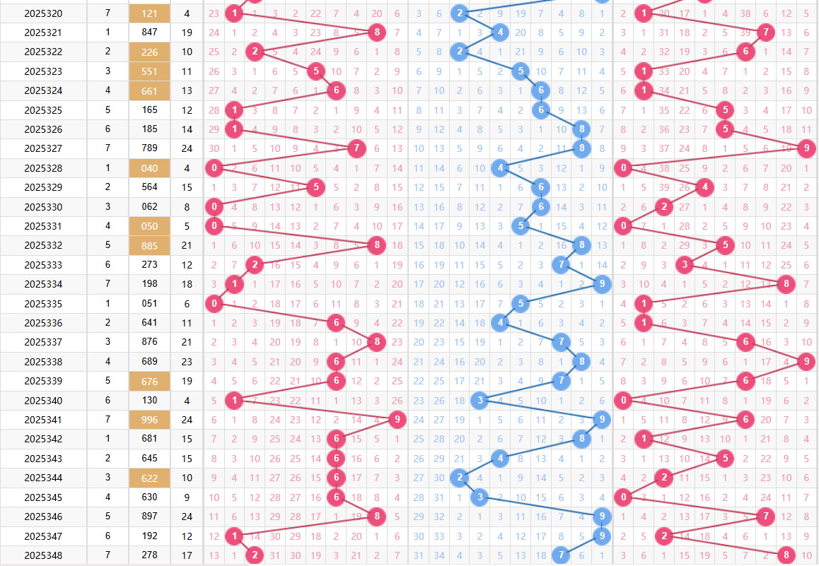 本期开奖号码为2、7、8,和值为2+7+8=17。和尾即为和值的个位数,因此本期和尾为7。和尾7属于中间偏高的类型,在0-9的和尾范围中,7属于出现频率中等但热度持续的类型。从走势上看,和尾7在前几期出现后,可能会带动相邻和尾(6或8)的活跃。