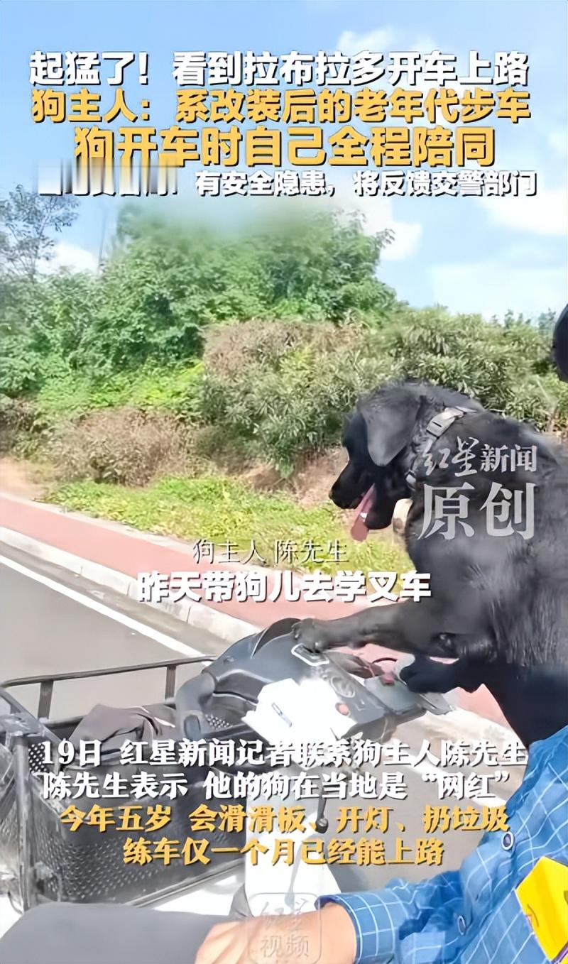19日,记者联系上狗主人陈先生。陈先生表示,他的狗在当地是“网红”,今年五岁,会滑滑板、开灯、扔垃圾,练车仅一个月已经能上路。