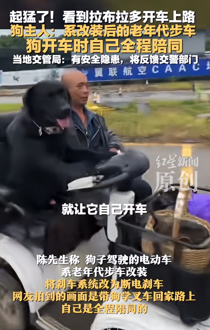 陈先生称,狗子驾驶的电动车系老年代步车改装,将刹车系统改为断电刹车 ,网友拍到的画面是带狗学叉车回家的路上,自己是全程陪同的。