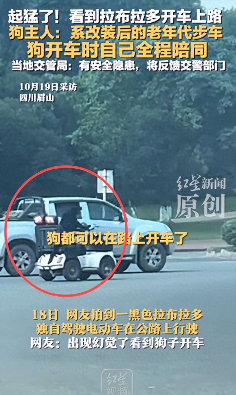 18日,网友拍到一黑色拉布拉多独自驾驶电动车在公路上行驶,笑称:出现幻觉了看到狗子开车。