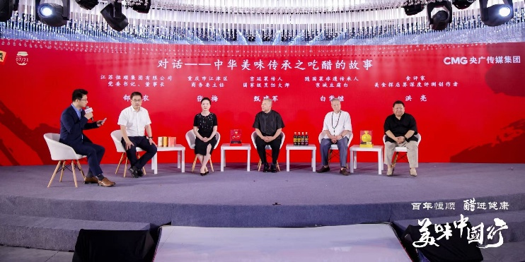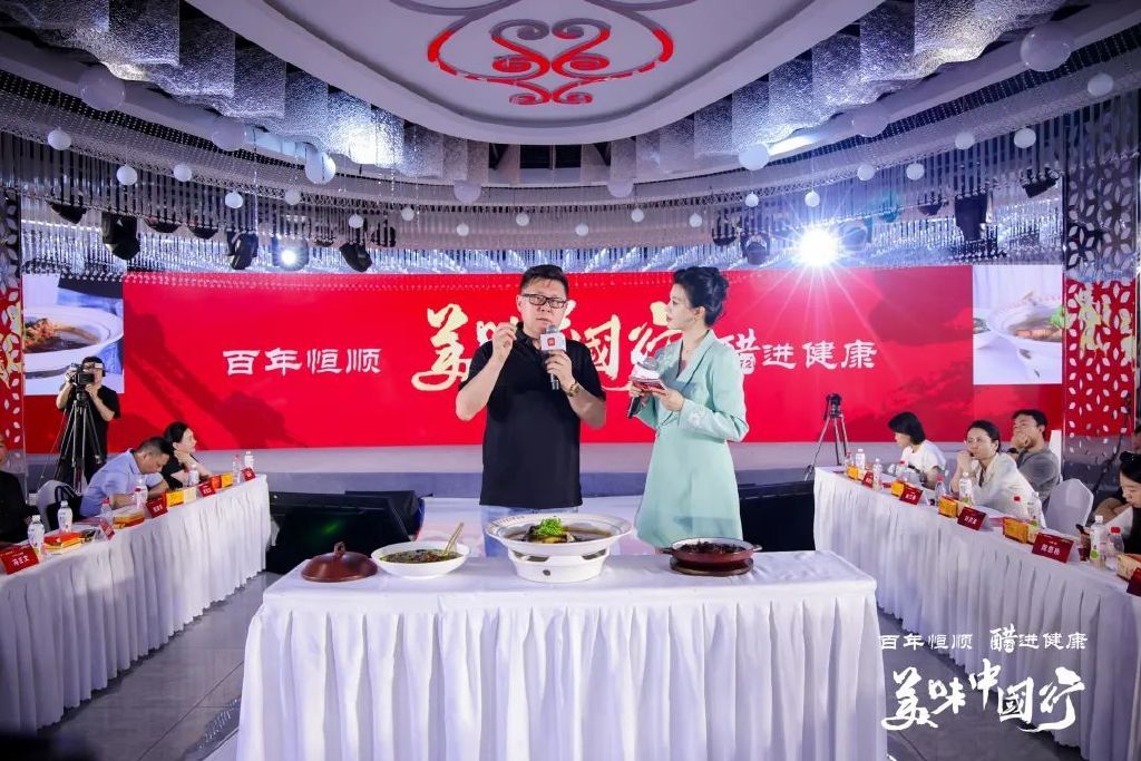 在圆桌论坛《对话:中华美味传承之吃醋的故事》环节,江苏恒顺集团有限公司党委书记、董事长郜益农,重庆市江津区商务委主任张梅,宫廷菜传人、国家级烹饪大师甄建军,随园菜非遗传承人、京城豆腐白白常继,食评家、美食探店界深度评测创作者洪亮,共同探讨了饮食文化的传承与创新、健康消费新趋势新挑战、提升健康商品和服务供给质量、产业创新与未来协同等热门话题。