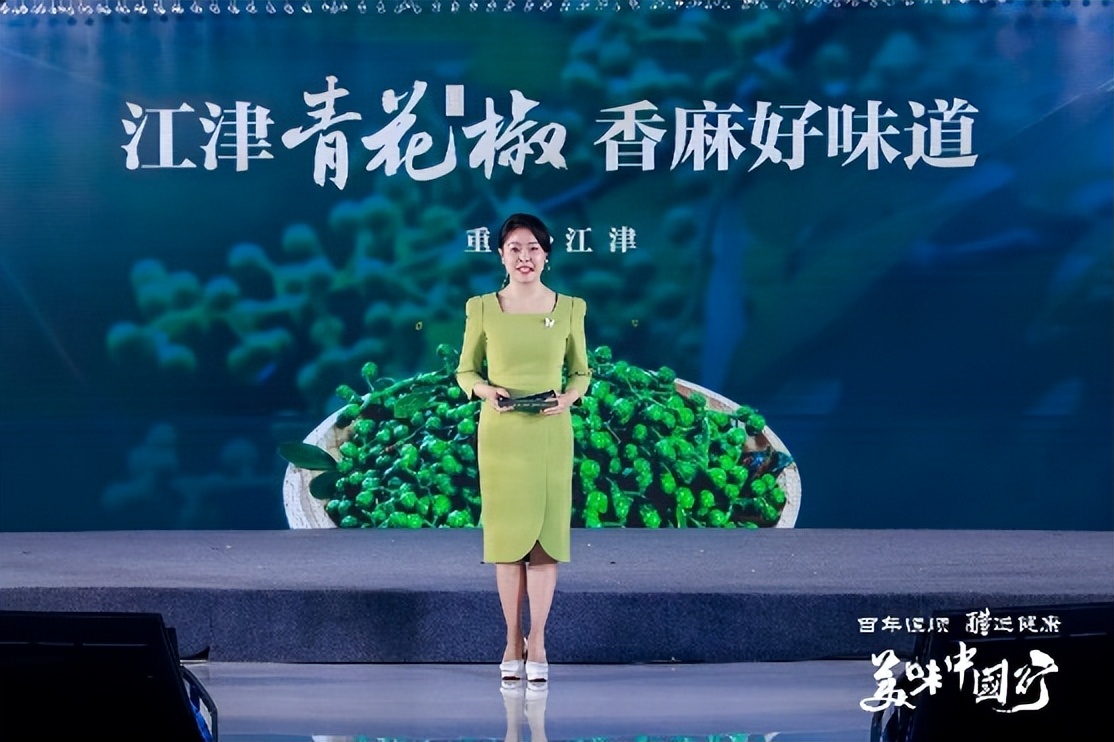 重庆市江津区融媒体中心主持人陈姗向与会嘉宾介绍了江津花椒产业与美食。她表示,江津作为“中国花椒之乡”,拥有全国最大的青花椒产区,种植历史逾2000年。以江津花椒为核心的“花椒宴”系列代表性菜品通过巧妙运用花椒,将本地富硒食材与千年椒香完美融合,生动展现了江津美食的独特魅力和产业创新活力,每一口都是舌尖上的江津智慧。