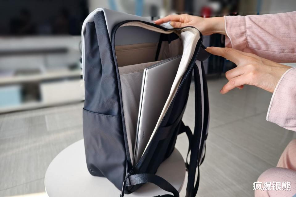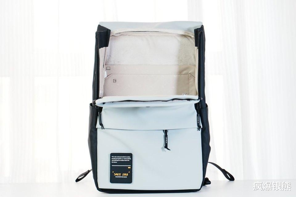 在收纳空间上,MOMENT这款背包无论是容量还是丰富性都表现不错。主收纳袋两边设计了敞口拉链,打开后包包能做到180°的超大敞口,放置和拿取物品时很方便。包包内部设计很用心,内部有独立的绒面电脑仓,可放置15.6寸笔记本一台,还有很大一部分空间可以放很多书籍或者换洗衣物,另外其还有多种暗袋可收纳钱包、卡片等重要资料。