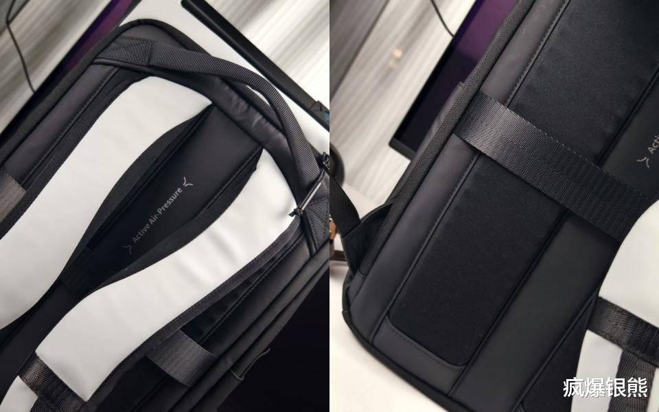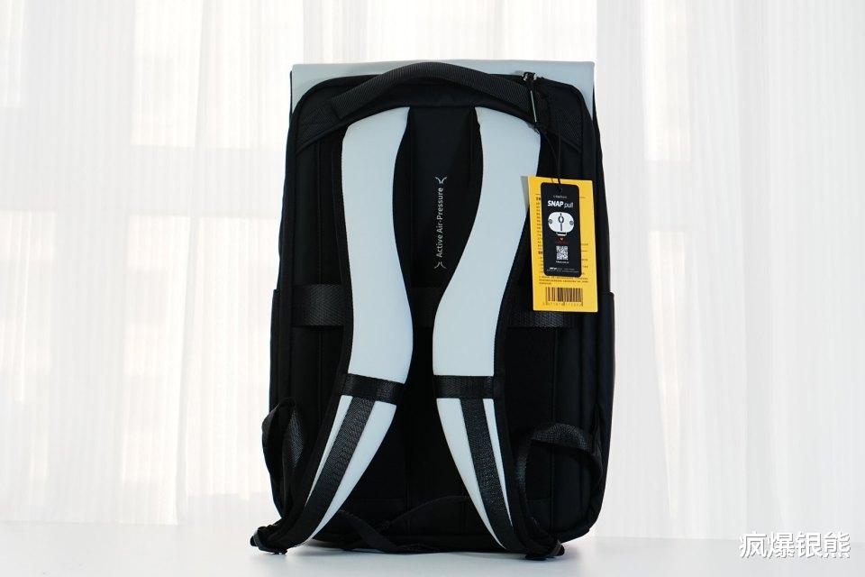 在背负舒适性上,其给我的感觉还是比较舒服的;得益于S型的气垫肩带及人体工学设计,可以有效分散背负压力,无论装东西多少,背上它都很贴合,不会压肩。